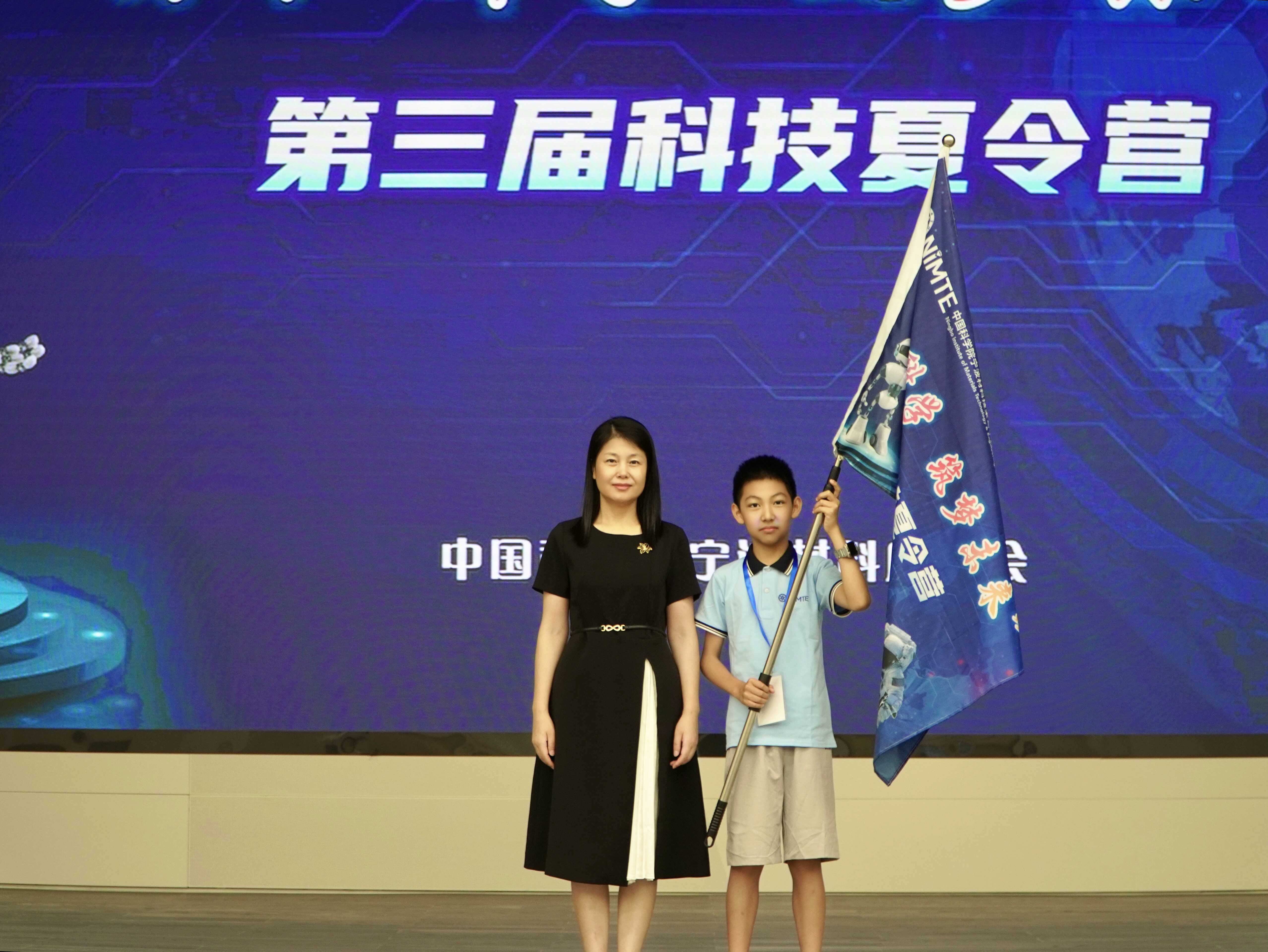 在开营仪式上,宁波材料所副所长闻霞代表所工会殷切寄语学员们怀揣好奇心和探索心,在沉浸式研学中开拓视野、团结互助、收获启迪,点燃崇尚科学、探索未知的兴趣,并为学员代表颁授了营旗。