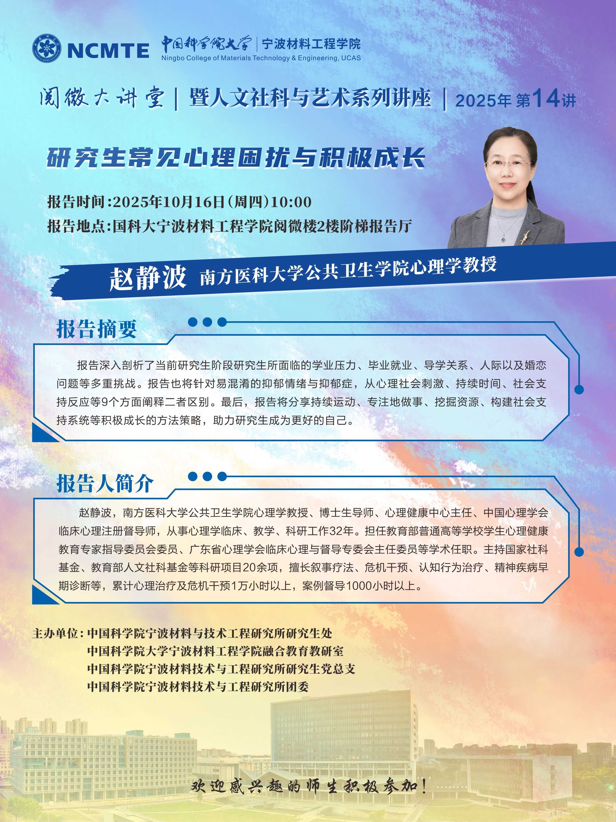 10月16日:赵静波:研究生常见心理团扰与积极成长
