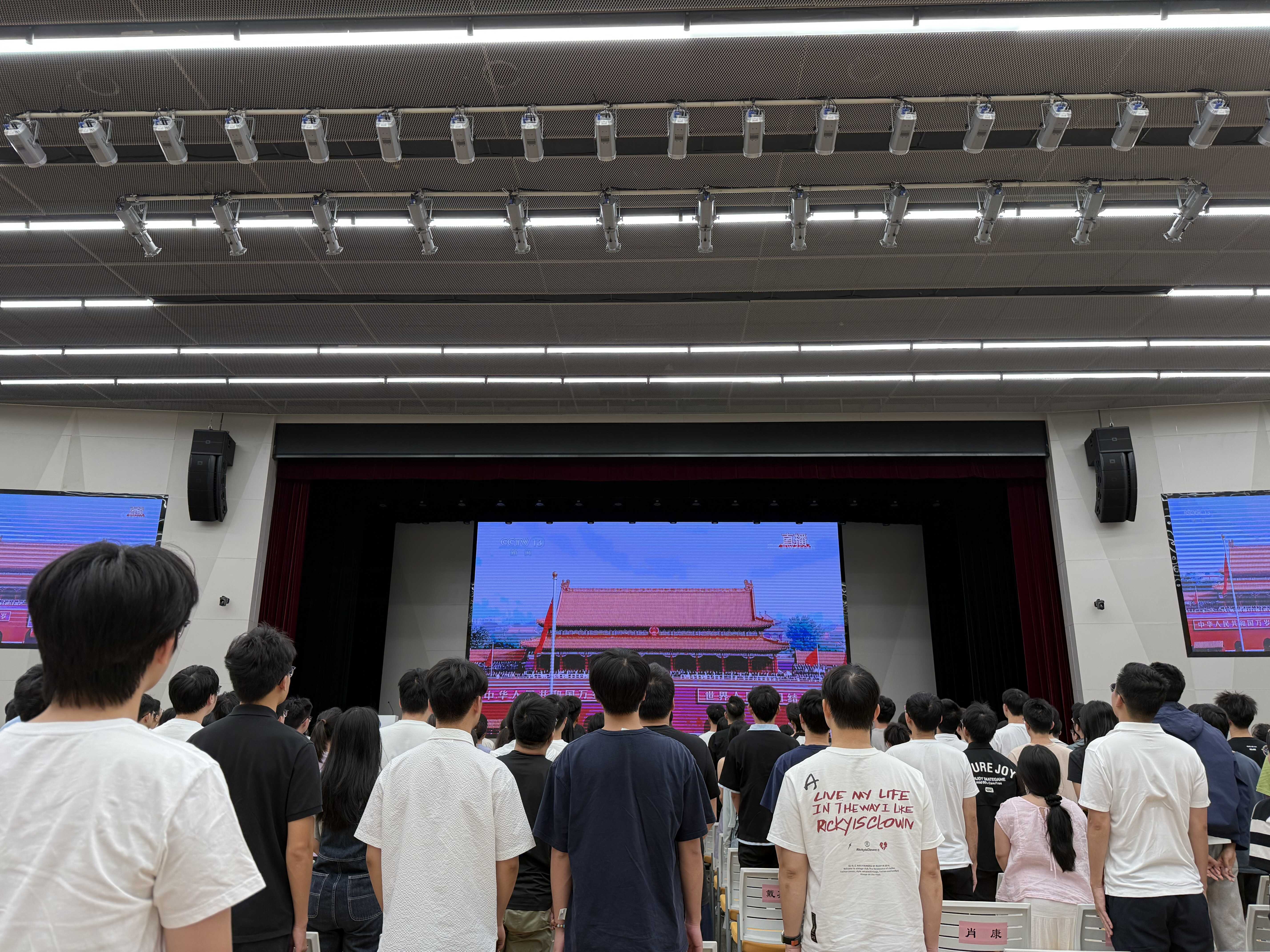九三阅兵不仅是一场展示国家实力的盛典,更是一堂深刻的历史课和爱国主义教育课。当日上午,阅微楼的报告厅里坐满了前来观看直播的团员青年,大家目光坚定,全神贯注地注视着阅兵仪式,感受着历史与现实的交融。