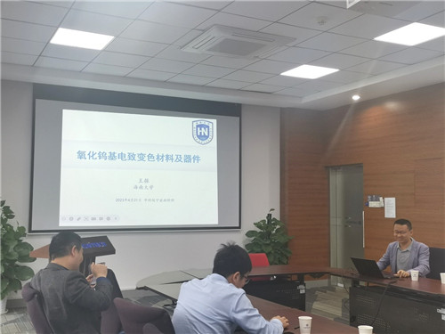 王振师从电致变色领域专家赵志刚研究员。他首先做了关于氧化钨基电致变色材料及器件的报告,介绍了通过PB薄膜修饰氧化钨纳米线层形成新型的电致变色复合材料以实现双波段调光控热、WO3·2H2O 纳米片以及非对称法布里-珀罗谐振腔结构的电致变色器件等相关工作,实现宽色域、多色彩、可光学调制等高性能电致变色材料。王振以他自身学习经历告诉同学们科研需要多锻炼逻辑思维,以提升思考能力,在遇到困难时不要轻易放弃,统筹规划好研究生的生活可以有效减少负面情绪等宝贵经验。