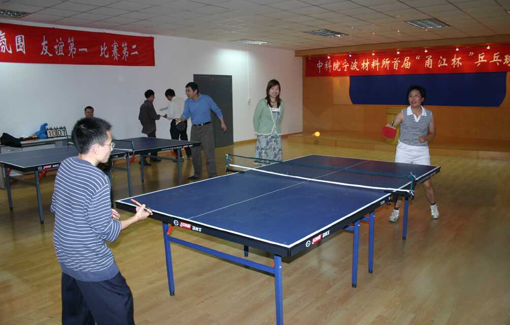 说起开展文体活动一事,记得在2005年国庆假期我和许高杰研究员在所里值班,聊起职工文体活动事宜,我突发奇想,跟许老师说:“现在所领导让我兼管员工文体活动,莫不如借用火炬大厦乒乓球活动室举行一次全所乒乓球比赛活动。”许老师听了表示十分认同。于是我俩就如何开展此项活动进行了一番讨论,将活动定名为“甬江杯”乒乓球友谊赛。之后我很快将设想形成方案报严庆书记审核批准,着手落实相关事宜。当时从所领导到每位师生员工热情高涨,不管会不会打乒乓球,打乒乓球水平如何,甚至有的人连球拍都握不好也被吸引加入比赛。经过紧锣密鼓的安排,材料所首届“甬江杯”乒乓球友谊赛于2005年11月7日至10日在简陋的火炬大厦乒乓球活动室如期举行。经过多轮角逐,顾群研究员荣获首届“甬江杯”乒乓球友谊赛冠军,蒋俊博士荣获亚军,崔平所长荣获季军。