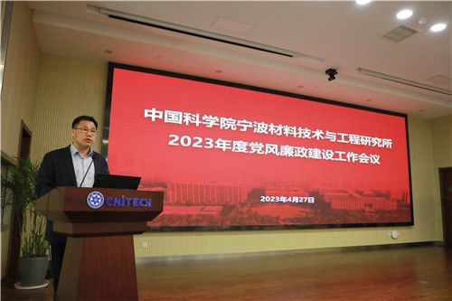4月27日上午,中国科学院宁波材料技术与工程研究所召开2023年党风廉政建设会议,深入学习贯彻党的二十大、二十届中央纪委二次全会和中科院党组、研究所党委相关会议精神,结合开展学习贯彻习近平新时代中国特色社会主义思想主题教育,部署推进研究所2023年度党风廉政建设工作。党委委员、纪委委员、所务会成员,党支部书记和纪检委员,科研团队和所属各部门负责人参加会议,纪委书记杨振华主持会议。