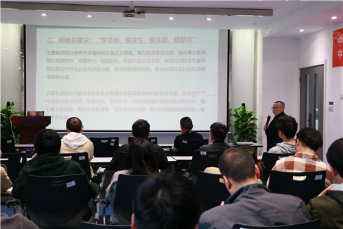 接着,党支部书记蒋俊做了学习贯彻习近平新时代中国特色社会主义思想主题教育动员部署,他从主题教育的重大意义、总要求、根本任务和工作要求上进行阐述,强调党员们要全面加强理论武装,坚持不懈用习近平新时代中国特色社会主义思想凝心铸魂,教育引导广大党员、干部更加深刻领悟“两个确立”的决定性意义,增强“四个意识”、坚定“四个自信”、做到“两个维护”;强调要大兴调查研究之风,运用党的创新理论研究新情况、解决新问题、总结新经验,要压实压紧责任,加强督促指导,圆满完成主题教育各项任务。
