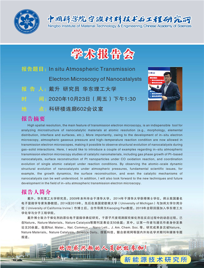 10月23日:戴升:In situ Atmospheric Transmission Electron Microscopy of Nanocatalysts 发布:2020-10-23 点赞: 字号:小 大 打印:
