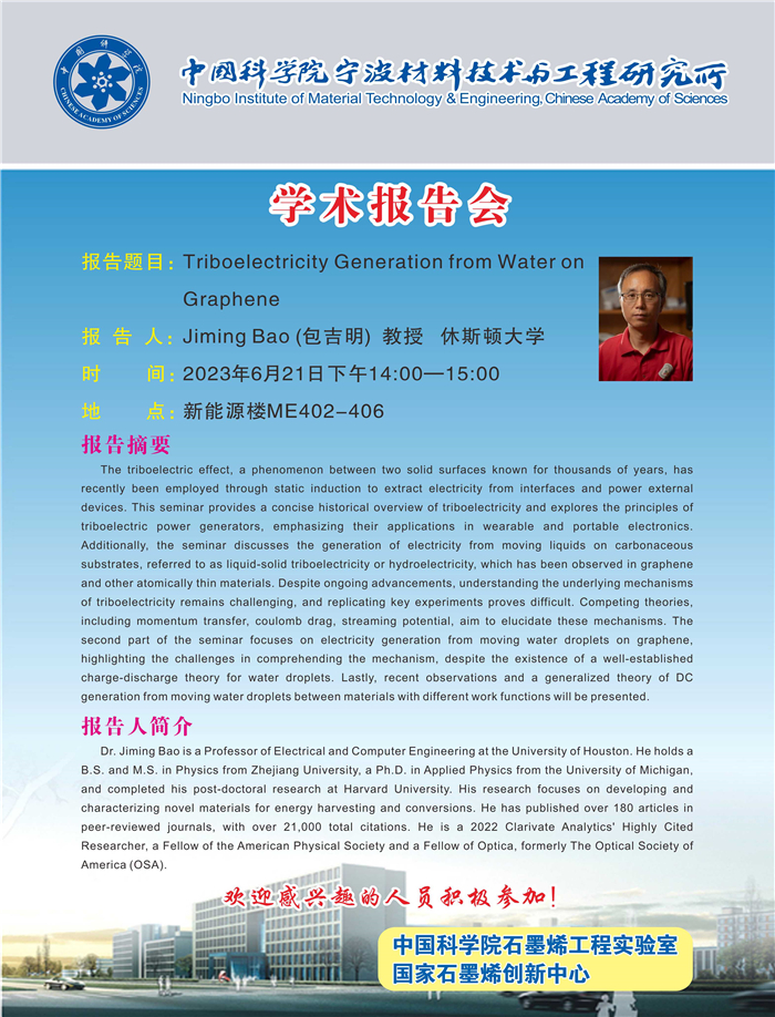6月21日:包吉明:Triboelectricity Generation from Water on Graphene