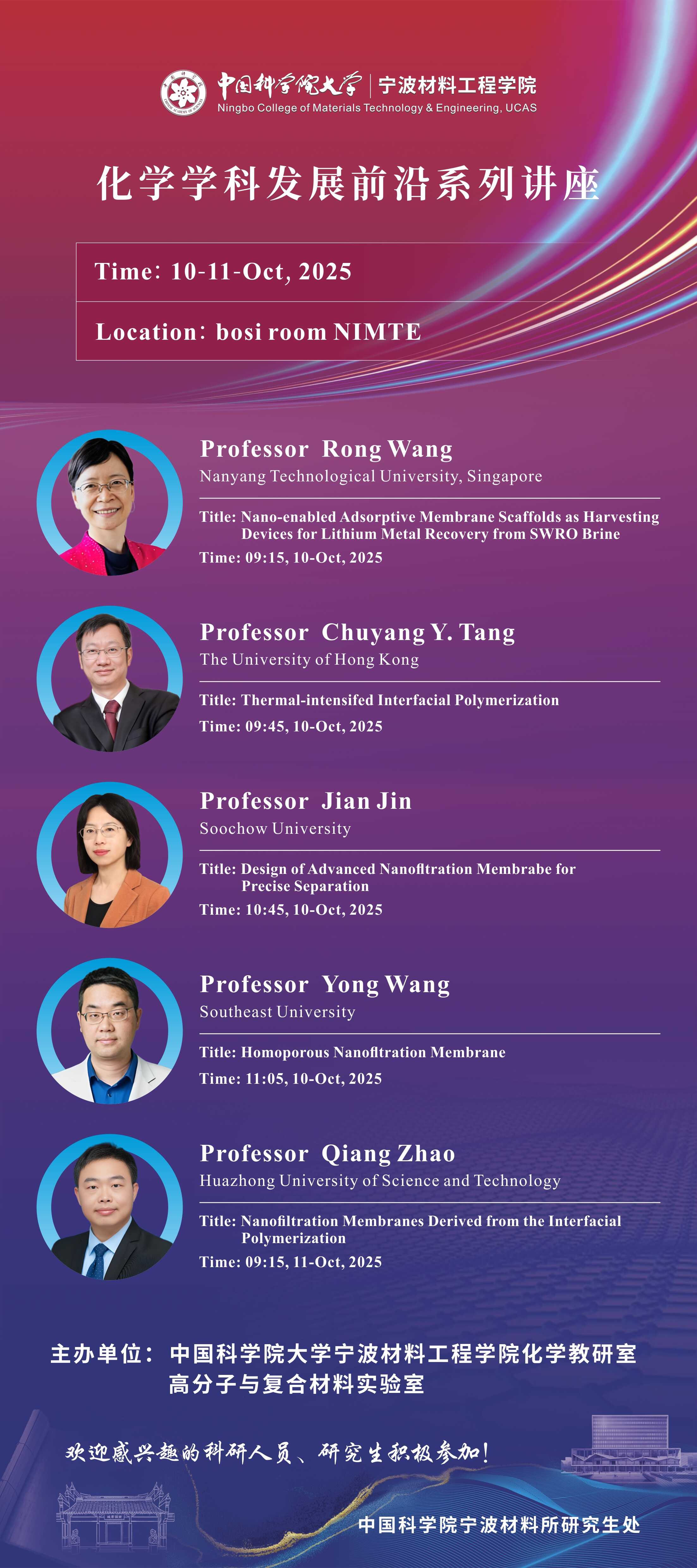 10月10日-11日:化学学科发展前沿系列讲座:先进膜材料与分离技术