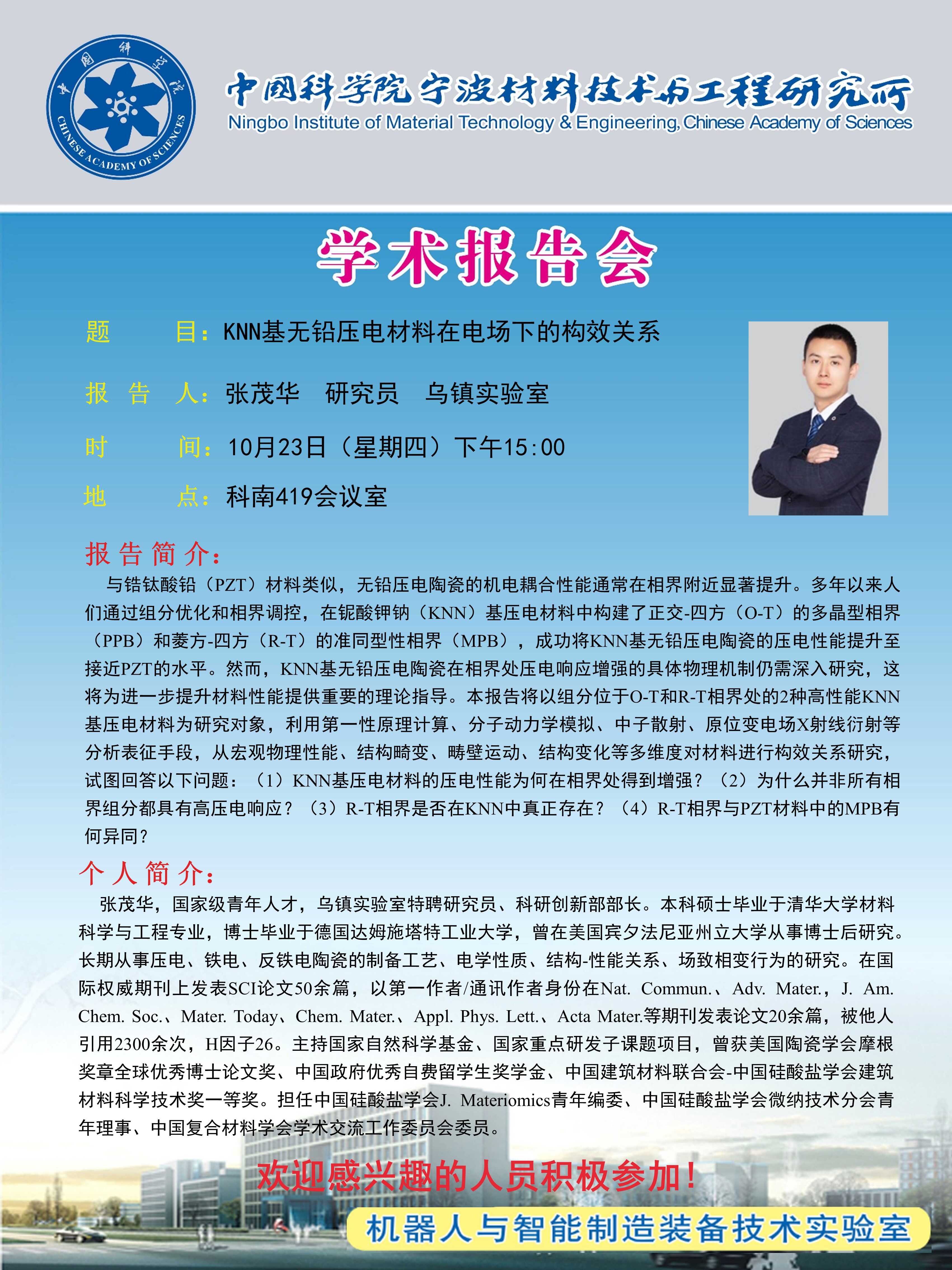 10月23日:张茂华:KNN基无铅压电材料在电场下的构效关系