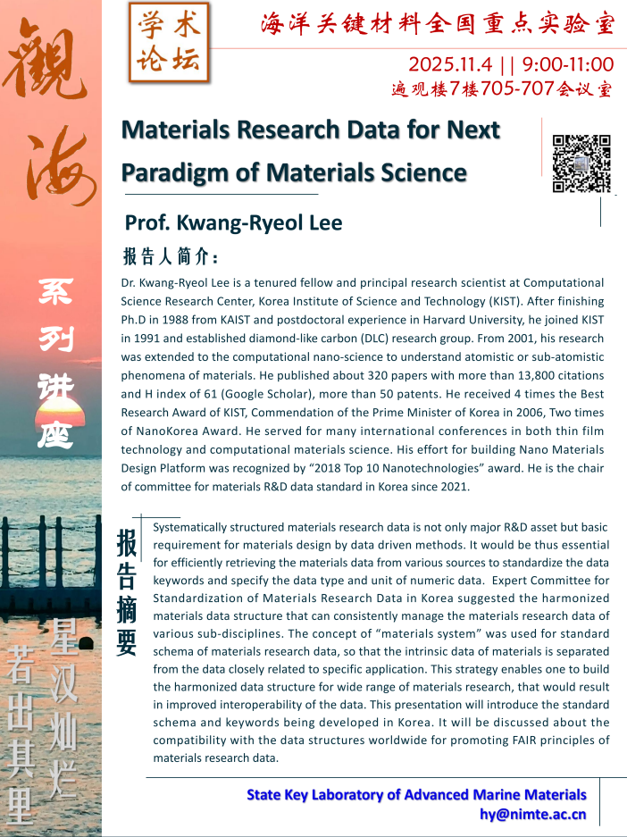 11月4日:Prof. Kwang-Ryeol Lee:Materials Research Data for Next Paradigm of Materials Science