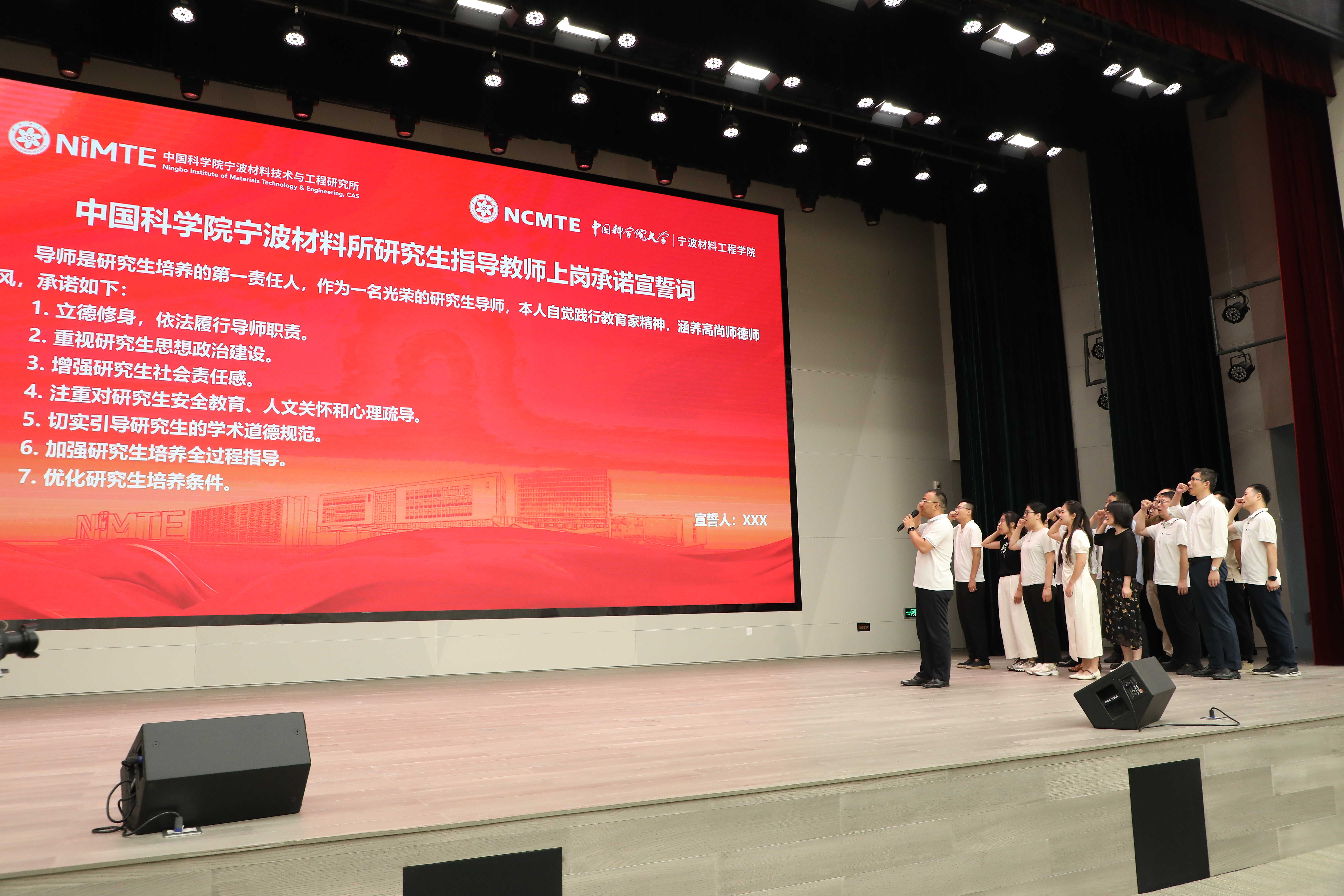 活动现场组织了2025年新增列导师代表上岗招生培养宣誓仪式,新增列导师代表庄严承诺履行育人职责。会议还邀请了宁波材料所王军强研究员、清华大学刘辛军教授作优秀导师分享专题报告。