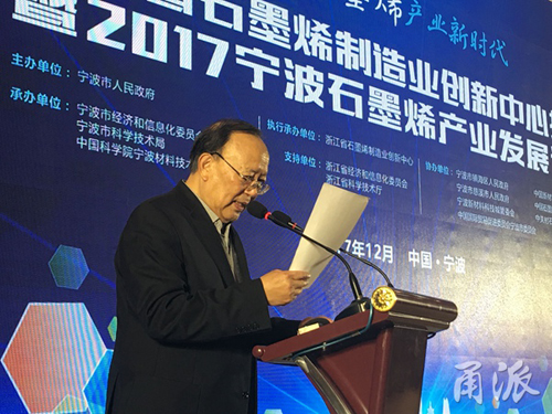陈仲朝在致辞中表示,以浙江省石墨烯制造业创新中心揭牌和2017宁波石墨烯产业发展论坛为契机,浙江省石墨烯制造业创新中心将紧紧围绕党的十九大报告中“创新是引领发展的第一动力”、“要突出关键共性技术、前沿引领技术、现代工程技术、颠覆性技术创新”的明确要求,推进我国石墨烯产业发展开启新篇章。