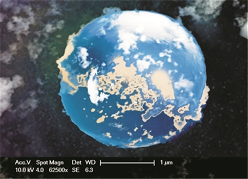 《浩瀚地球》是中国科学院宁波材料所科研工作者和子栋在实验中拍摄的。和子栋介绍,经电子显微镜放大后,大家可以看到镓铟合金小球表面有纳米钴颗粒的存在,这些纳米钴颗粒就像是“地球”外漂浮的“大气层”。