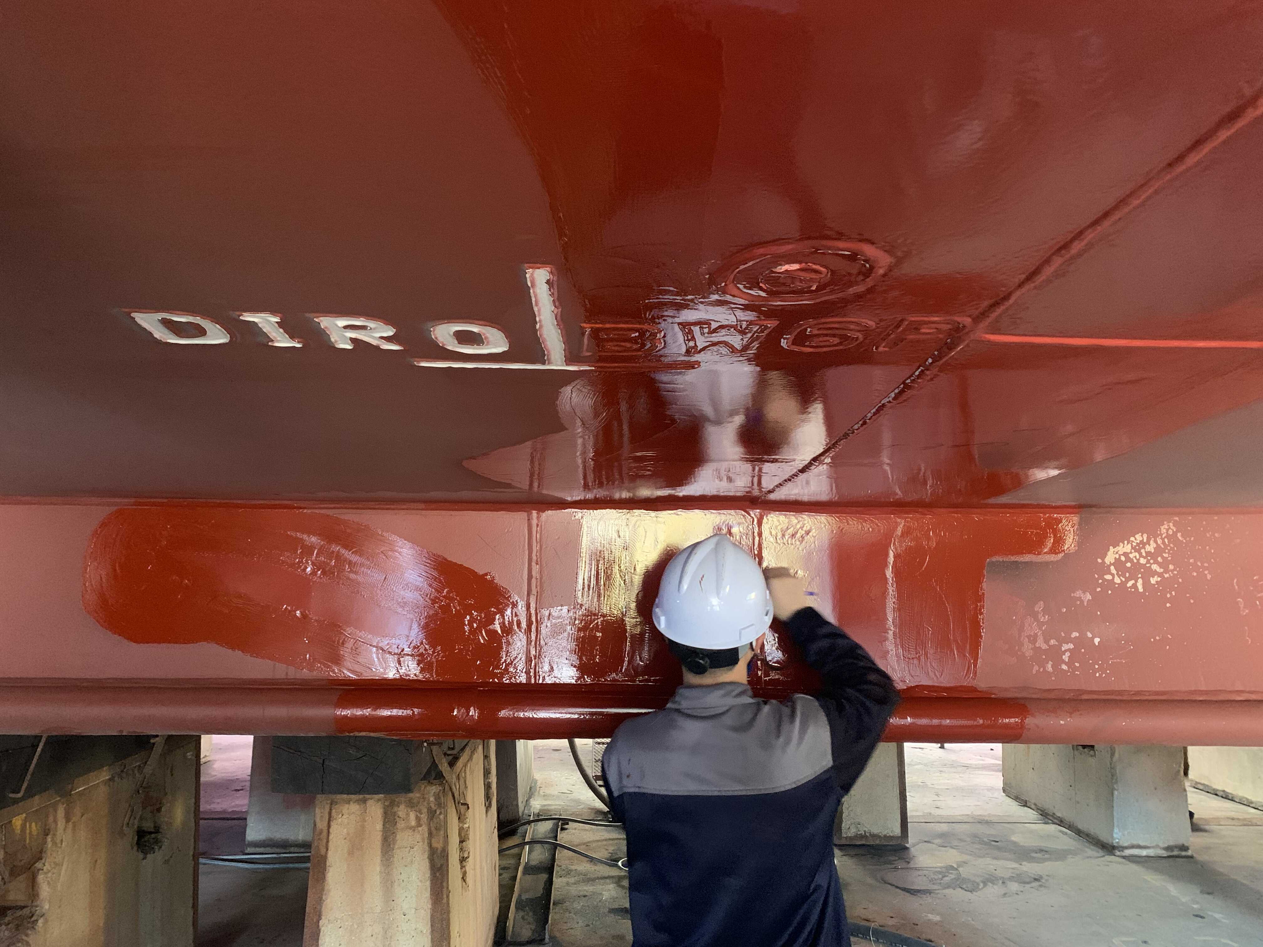 因此,今年在“雪龙2”号出海航行前,在中国极地研究中心大力支持下,再次进行了破冰涂层涂装验证工作。