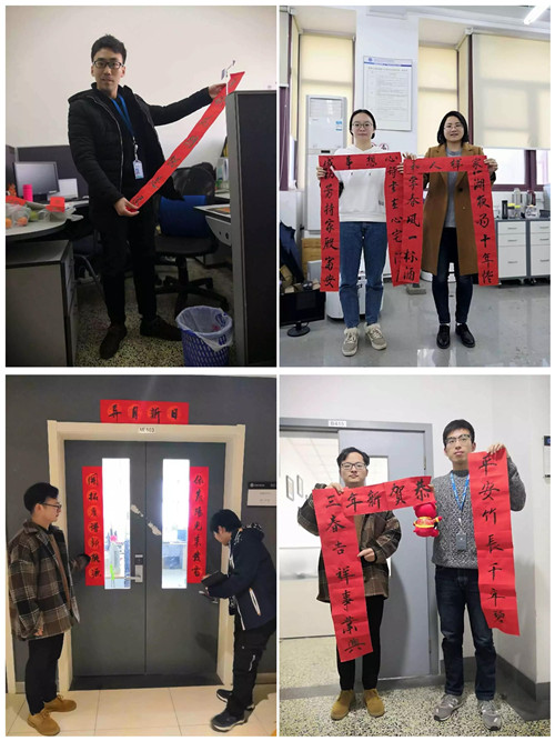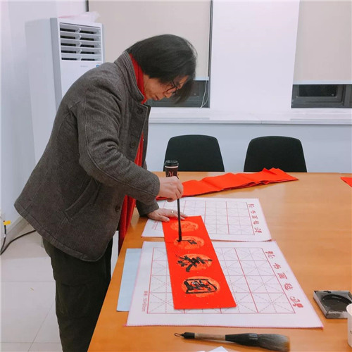 1月24号晚上,在研究生部刘慧敏老师的带领下,读书会携手纺织学院张林辉老师在行政三楼举办写春联送祝福活动,老师现场挥毫泼墨,为同学们现场免费写春联送吉祥。同学们领到春联喜气洋洋,将未干的春联晾在一旁的办公室,刚写好的春联散发着墨香氤氲在材料所周围,到处是书香墨气。
