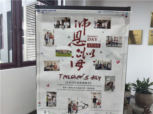 午间时段,每个课题组又用自己的方式向老师表达了节日祝福,研会的同学用照片记录下这一幕幕温馨的场景,下午又把这些照片冲印出来粘贴在了这次活动的大海报上——一张张照片将原本略显平淡的海报点缀得丰富多彩,每个课题组的身影都能在海报上有所体现。这已经不是单纯的照片和海报,远远望去,就像是每个课题组作为一个小家庭,先进制造所是一个大家庭,每个人都在这个家庭中享受着和睦融洽的氛围,构成了一道独特的风景线。