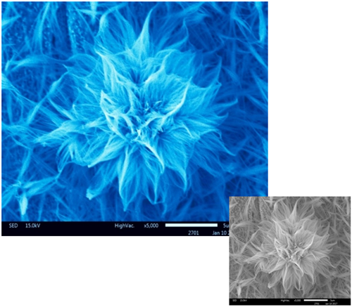 科学名:铜基材表面原位生长氢氧化铜(蓝色)