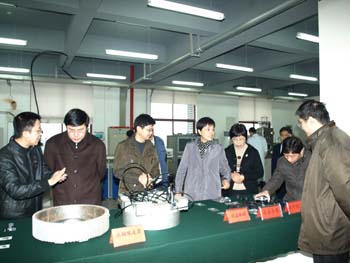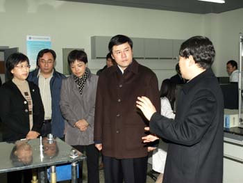 调研期间,陈新副书记一行首先视察了直线电机、功能陶瓷、高分子加工、磁控溅射、磁性材料、燃料电池等有关实验室和工程中心和测试中心。在视察过程中,陈新副书记与科研人员亲切交谈,详细了解科研进展、认真察看科研成果样品、仔细询问科研成果的产业化应用前景。在测试中心视察时,陈新副书记对材料所能投入近亿元资金建设成配置科学合理、功能先进适用、管理规范严格的测试平台很满意,特别是在国际金融风暴肆虐的危急关头,材料所决定面向浙江省的高新技术企业提供一年免费测试服务并长期提供技术咨询,充分体现了材料所的建设宗旨和理念,发挥了材料所在为地方经济社会发展方面的作用。