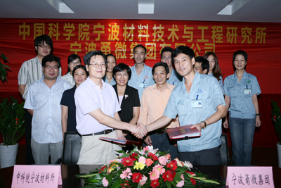 2010年9月17日下午,宁波材料所与宁波甬微集团有限公司在甬微集团举行“空调压缩机关键部件表面涂层与装备技术工程中心”签约仪式。何晓南所长与夏祖伟总裁代表双方共同签署了工程中心合作协议书,材料所所长崔平和甬微集团董事长庄希平为中心正式成立共同揭牌。由此,宁波材料所与宁波甬微集团有限公司正式确立长期、全面、深层次的合作关系。