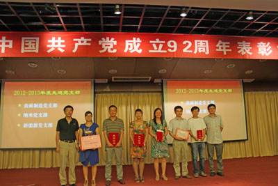 会上,表彰了3个先进党支部:表面党支部、纳米党支部、新能源党支部;19名优秀共产党员:顾勰民、王娟娟、李勇、王静刚、李德宏、张立生、李润伟、孙颖莉、储成义、乌学东、赵文杰、王蔚国、李华民、张秋菊、鲁越晖、宋伟杰、杨晔、范欣愉、戴高乐;4名优秀党务工作者:韦玮、付俊、李华民、张秋菊;2名优秀工会工作人员:王娟娟、何梦婕;5名工会活动积极分子:李雨桐、黄伟、胡桃、刘婷婷、杨茜;1名优秀团干部:罗宁;3名优秀团员:邱报、黄勇、李荣。