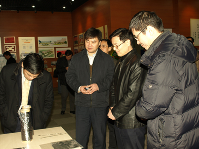 何中伟一行在党委书记严庆、副所长何晓南、副所长王蔚国的陪同下参观了宁波材料所科技成果展览室,听取了研究所的发展情况介绍,观看了各项科研成果展示,对材料所在科技成果转移转化机制的创新模式进行了交流。