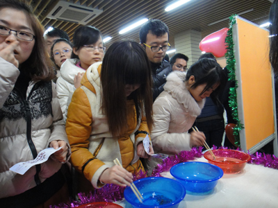 这次游园活动游戏项目多,各团支部精心准备了抢椅子、小李飞镖、薯片别跑、贴鼻子、铁人好几项、保龄足球、报纸拔河、筷子夹弹珠、猜谜语、套圈10个游戏;参与人员广,一层食堂人声鼎沸,热闹非凡,很多员工带着家属与小朋友一同来参加游戏,有340多人成功完成了游戏项目;奖品设置丰富,除准备了两个新年幸运大奖外,还准备了丰富的游戏欢乐奖品,根据游戏的难易程度和成绩预期设置了不同层次的各类奖品供大家选择。很多师生员工感叹道:“游戏很好玩,奖品准备的也很丰富,这样的活动挺好的。”
