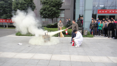 为了使同志们熟练使用灭火器具,在集结点现场,“燃起”熊熊大火,由各部门安排人员进行现场灭火演练,有用灭火器的,有用消防水的。现场爆发出阵阵欢呼声,同时也把活动推到了高潮。