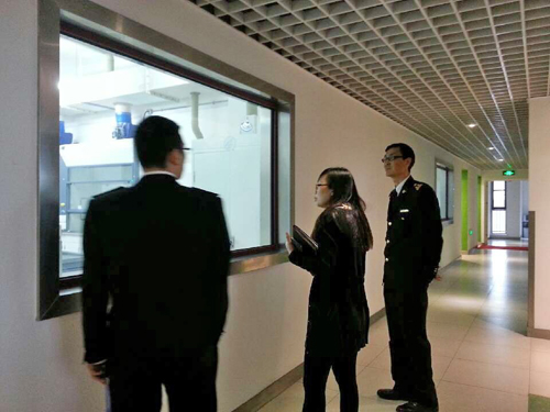 张晓红陪同稽查科的同志实地查看了二期实验室中部分进口仪器设备的安装地点、使用与运行状况。