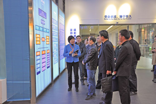 3月11日,工信部原材料司副司长潘爱华、中国石化联合会副会长、秘书长赵俊贵一行来到宁波材料所考察调研。宁波材料所所长崔平、副所长郑剑等接待了潘爱华一行。 崔平对工信部原材料司的调研表示热烈欢迎,并介绍了宁波材料所十年来的发展历程,着重介绍了在碳纤维、碳纤维复合材料、石墨烯、永磁材料等领域取得的成果。潘爱华对宁波材料所近年来取得的科研成果给予了充分的肯定,希望宁波材料所再接再厉,在原材料领域能有更新、更强的突破。 调研期间,潘爱华一行还参观了科研成果展厅、动力锂电池实验室、先进制造所工程中心、碳纤维工程中心、磁性材料实验室。 浙江省经济信息化委员会医化行业办主任夏伟军、浙江省石化行业协会秘书长张旭、宁波市经济信息化委员会主任陈炳荣随同调研。